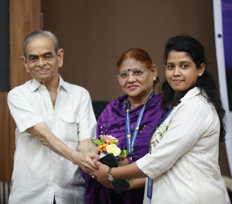 A moment of appreciation for my contribution as a Physiotherapist to the students of the SnehJyot Team on the occasion of World Disability Day, 3rd December 2024.It is with immense honor and respect that I received this recognition from two of the most influential individuals in my life – Respected Vishnu Patwardhan Sir, former Director of Asmita Vidyalaya, and my esteemed teacher from Asmita Vidyalaya.